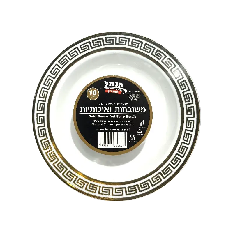 Additional attributes: Disposable soup bowls, gold decorative rim, pack of 10 bowls