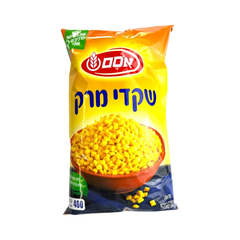 Osem Corn Kernels are crunchy corn pieces made from corn and lightly seasoned with salt. They have a firm texture and a natural corn flavour.