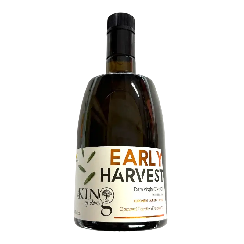 Early harvest extra virgin olive oil produced exclusively from green Koroneiki olives.