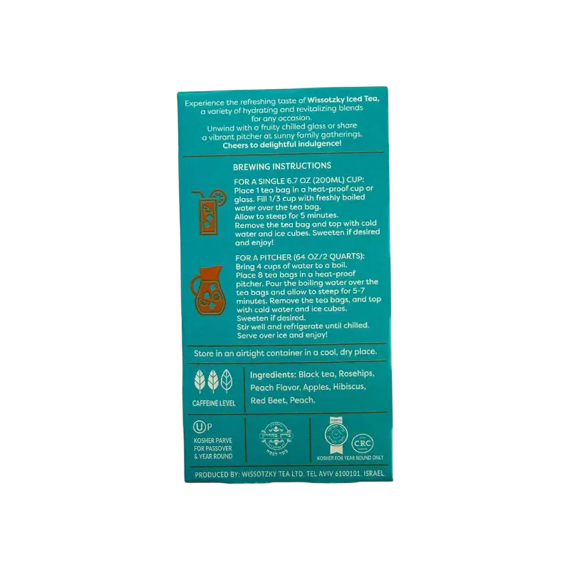 Black tea blend with peach flavor, specially crafted for refreshing iced tea preparation.